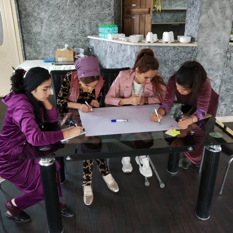 Тренинг на тему "Жизненные навыки" проводится молодыми ребятами, которые ранее проходили подобные тренинги в ОО Лига женщин-инвалидов «Иштирок» и стали впоследствии тренерами.